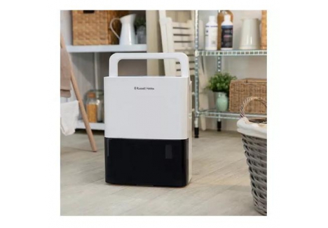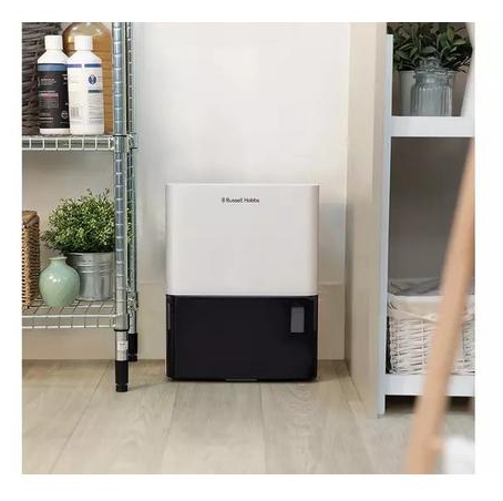 Russell Hobbs black & white dehumidifier with auto defrost and restart: dependable in changeable conditions