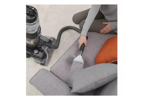 The included 2.5m hose, motorised SpinScrub hand tool, and hard floor attachment enable versatile above-floor cleaning – ideal for upholstery, stairs, car interiors, and even sealed hard floors. The integrated pre-treatment wand targets tough stains before washing, while the AutoMix system ensures precise detergent dosing for optimal results without waste.