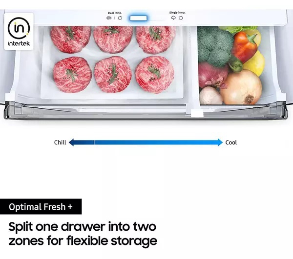 Wouldn't it be good if all your food in the fridge stayed really fresh? With two separate air flows and precise fridge temperature control, Samsung Twin Cooling Plus™ does just that. So no more dried out vegetables or rubbery cheese. Not only that, but it stops food odours mixing, so your food tastes the way it's meant to.