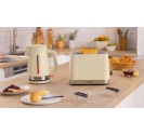 The Bosch TAT4M227GB 2 slice toaster cream is a compact and stylish breakfast appliance designed to deliver evenly browned toast and pastries with minimal effort. Finished in soft cream and built with BPA-free plastic, this toaster complements modern UK kitchens with a neutral aesthetic. With a detachable and foldable bun warmer, users can enjoy a wider variety of breakfast options—from croissants to bread rolls—without cluttering the countertop. The Bosch TAT4M227GB compact toaster with bun warmer combines thoughtful design with practical features, including variable browning control, automatic centring, and high lift for safe retrieval of smaller slices. Whether you're preparing a quick weekday breakfast or indulging in a weekend brunch, this toaster offers reliable performance and convenience.