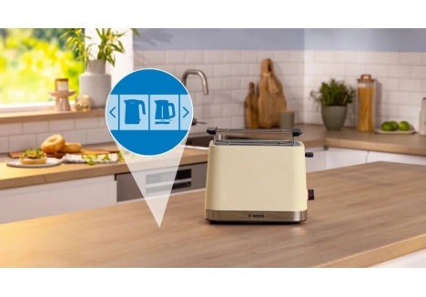 Absolutely. The Bosch toaster with automatic centring and high lift feature is designed for safe and easy use. Automatic centring aligns each slice perfectly within the slot, guaranteeing uniform toasting. The high lift mechanism raises smaller items above the slot edge, allowing users to retrieve them without reaching into the hot toaster. Combined with the auto-off function, which shuts down the appliance if bread becomes stuck, this model offers peace of mind with every use.