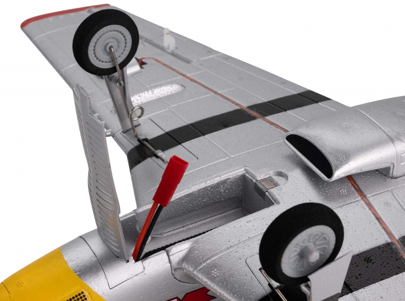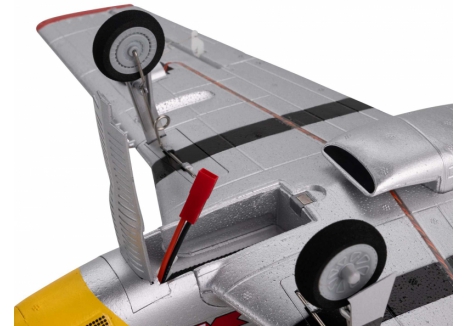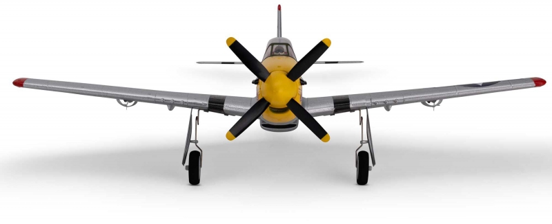 The P-51D Mustang is world-renowned as quite possibly the most iconic fighter aircraft of all time! Its unique design resulted in it delivering some of the best performance among all fighter aircraft flown in WWII. "Detroit Miss" is a history-making P-51D Mustang that was flown by Urban "Ben" Drew, and in 1944 he became the first USAAF pilot to shoot down two jet-powered Messerschmitt Me 262 fighter aircraft with it. The E-flite UMX P-51D Mustang is an ultra-micro sized model of the famous aircraft that's a warbird version of the popular UMX P-51D Voodoo racer. It's equipped with expertly-tuned AS3X and optional-use SAFE Select technologies, is 2S and 3S battery compatible, and provides real-time battery voltage telemetry to compatible transmitters. Because of its ultra-micro size, the UMX P-51 can be flown in more places and smaller spaces including many yards, parks, and sports fields! The fixed landing gear with a steerable tailwheel makes it easy to taxi, takeoff from, and land on smooth surfaces, or you can leave the landing gear off for more speed and vertical performance with easy hand launches over and landings on grass. It's the most affordable, convenient, and easiest-to-fly replica of a P-51D Mustang yet!