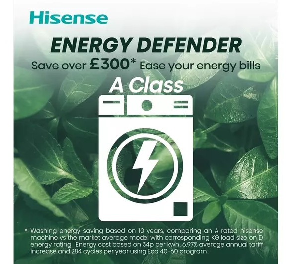 This Hisense washing machine has an Inverter motor that rotates at just the right speed for the load you're washing.