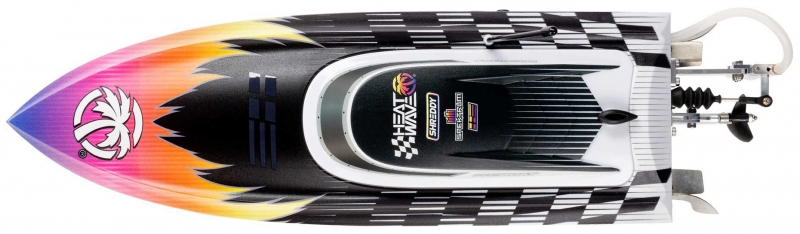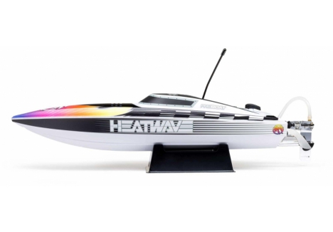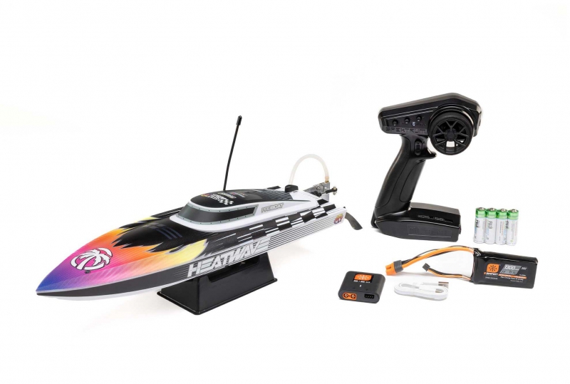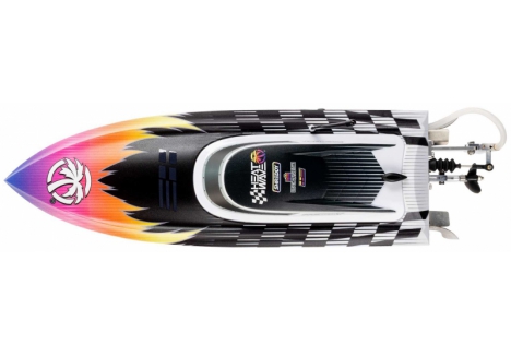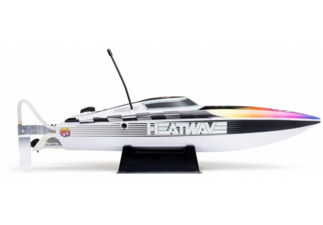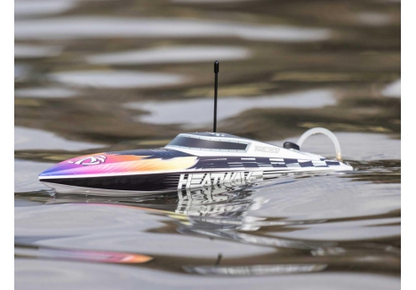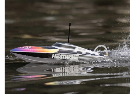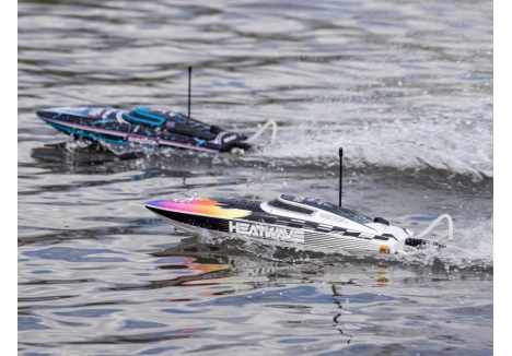 Pro Boat B-PRB08053T2 Recoil 2 18" RTR with 2950Kv brushless motor and 30A ESC is a compact, high-performance RC boat designed for hobbyists who want speed, style, and simplicity in one ready-to-run package. Finished in the officially licensed Heatwave livery inspired by Apollo Sunglasses: Blurr Customs, this mini deep-V boat combines aggressive aesthetics with proven engineering. With a factory-installed Spektrum brushless power system, water-cooled electronics, and a self-righting hull, the Recoil 2 18" delivers speeds over 25 MPH and a runtime of approximately seven minutes. Its lightweight ABS hull, breakaway rudder, and adjustable metal hardware make it durable and responsive, while the included Smart battery and USB-C charger simplify power management. Whether you're new to RC boating or looking for a portable thrill machine, this model offers a complete experience straight out of the box.