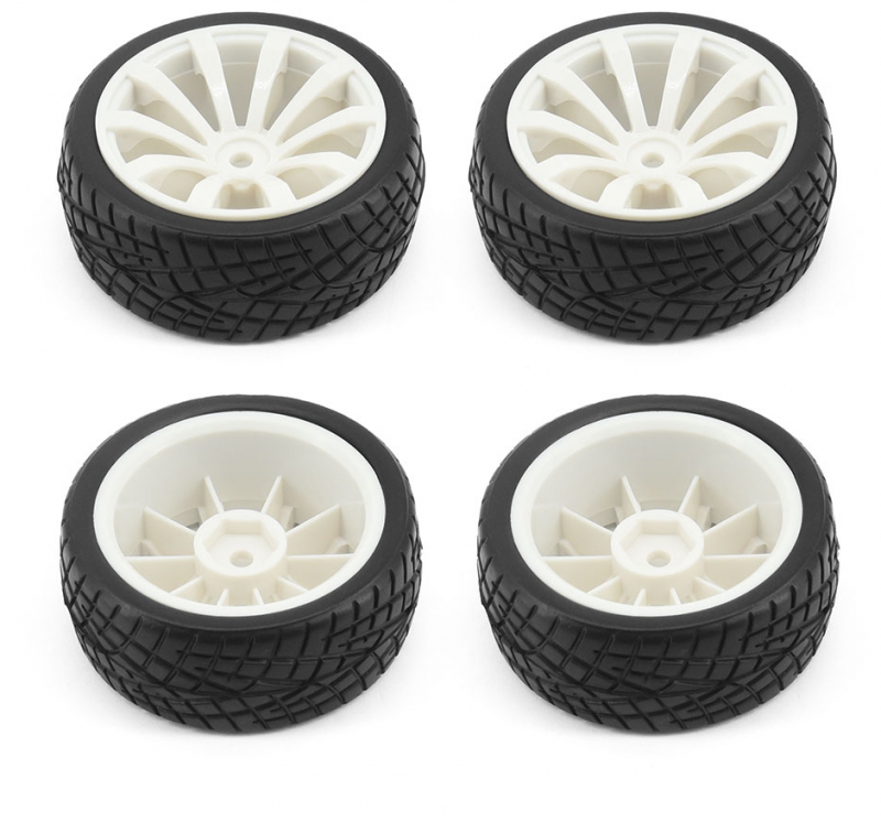 Finish the look of your Scale Touring body with these great looking wheel and tyre sets. Mounted Directional Treaded Slick tyres with foam inserts on a stylish 10 Spoke White Wheel.