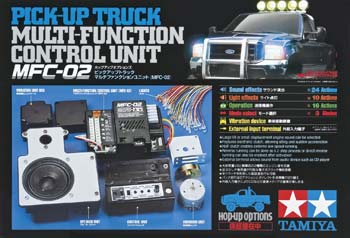 - Product Type: Tamiya TAM53957 Multi Function Control Unit MFC-02, Tamiya TAM53957 MFC-02 for 1/10 High-Lift trucks, Tamiya TAM53957 MFC-02 lighting and sound system, Tamiya TAM53957 MFC-02 with vibration unit and ESC, Tamiya TAM53957 RC control module for realistic effects