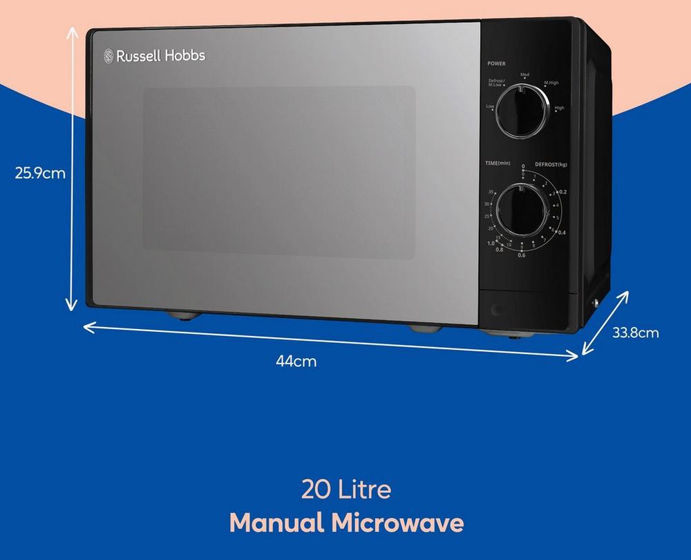 Built to last, this sleek microwave from Russell Hobbs adds a touch of classic style to your kitchen.