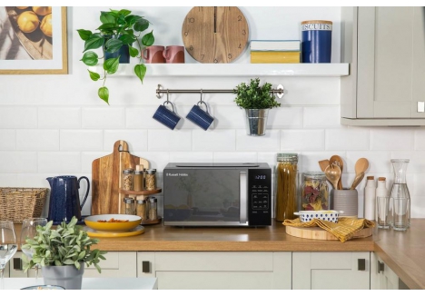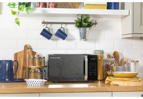- Product Type: Russell Hobbs RHMT2045B digital microwave black, Russell Hobbs RHMT2045B 20L touch control microwave, Russell Hobbs RHMT2045B solo microwave with timer, Russell Hobbs RHMT2045B with 10 power levels and LED display, Russell Hobbs microwave with 6 auto cook settings and child lock