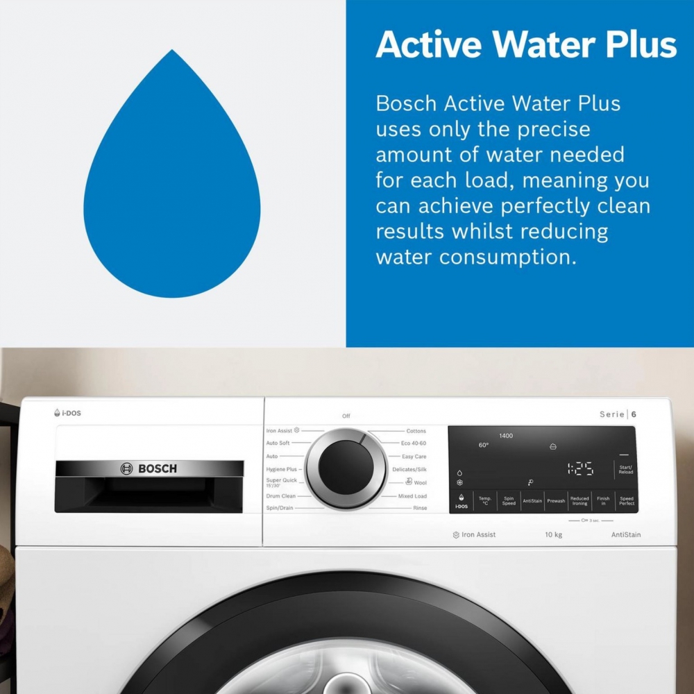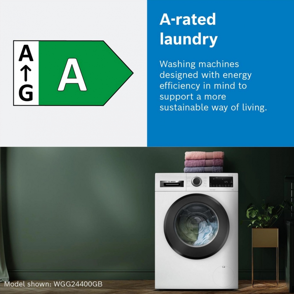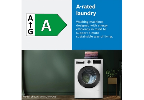 The Bosch WGG254Z0GB comes equipped with a variety of efficient programmes, including Super Quick 15/30-minute cycles for small or lightly soiled loads. The convenient Reload function allows you to pause the wash and add forgotten items, saving you from having to run extra cycles. Additional options such as SpeedPerfect and temperature selection ensure optimum results in less time, with less hassle. These features combine to deliver a white washing machine with hygiene and reload function ideal for busy households.