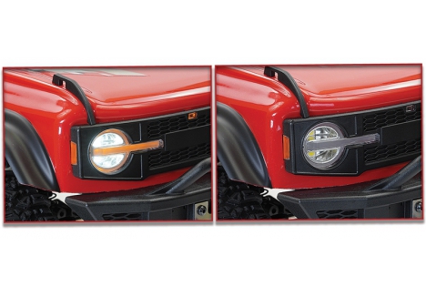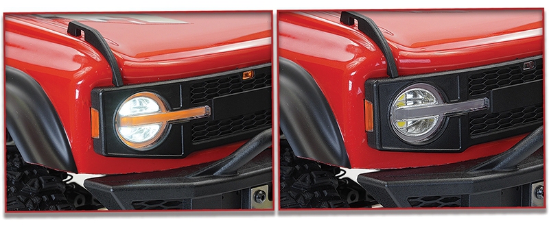 The multi-function LED lighting system on the FTX Centaur 4WD RTR rock crawler with aluminium shocks and LED lights enhances both visibility and realism. Factory-installed front and rear lights connect via magnetic connectors, simplifying body removal while maintaining a secure electrical connection. This design eliminates the hassle of unplugging wires and ensures consistent lighting performance. Whether navigating twilight trails or showcasing the vehicle’s scale details, the LED system adds practical and aesthetic value to the FTX Centaur 4WD 1:10 RTR Trail Vehicle Red FTX5475R.