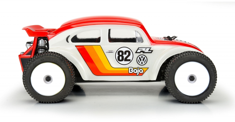 This is the classic Pro-Line Volkswagen® Baja Bug, now for the Losi® Mini-T™ 2.0! The VW® Baja Bug is back with the same style, quality, and features as the popular 1/10 SC-sized version! This officially licensed retro classic body completely changes the look of your Mini-T™ 2.0! From the flared fenders to the exposed rear engine details, to the add-on rear wing, the Baja Big is the coolest and most unique body option on the market.