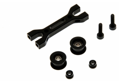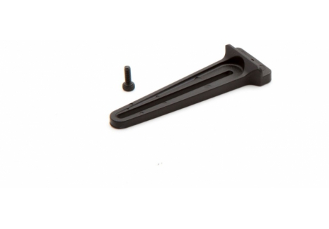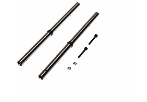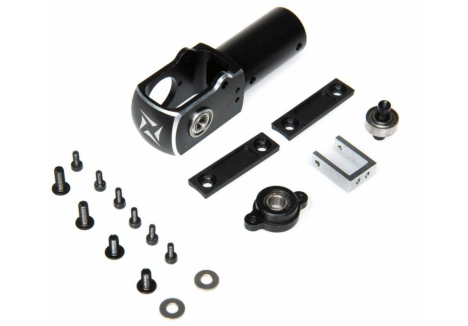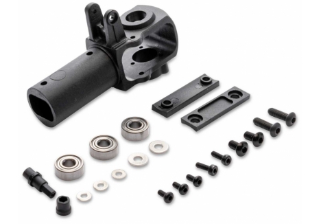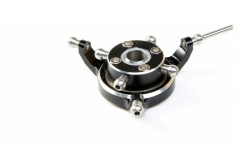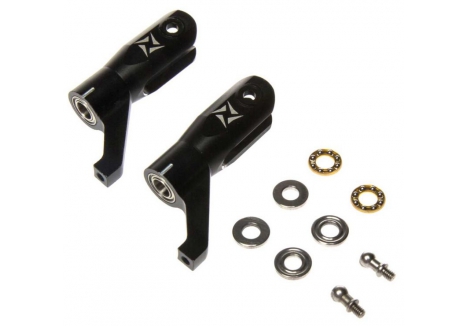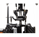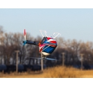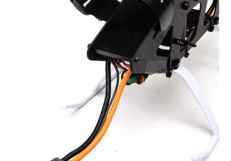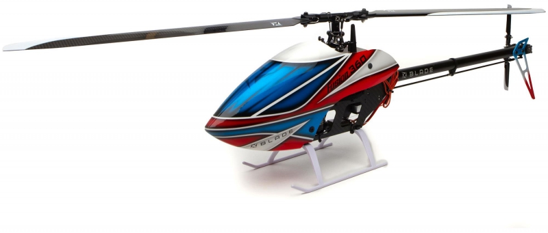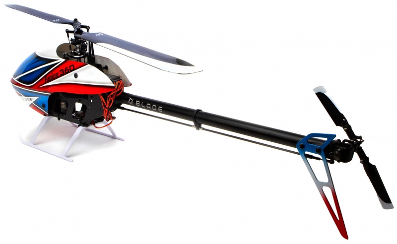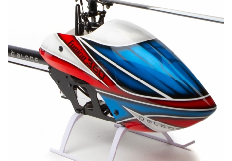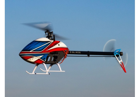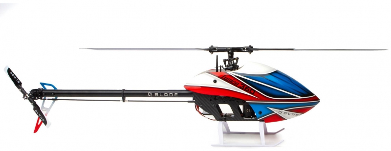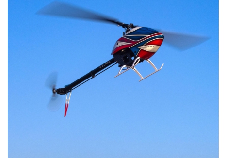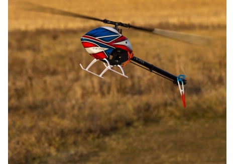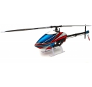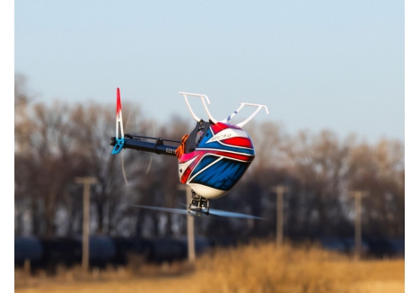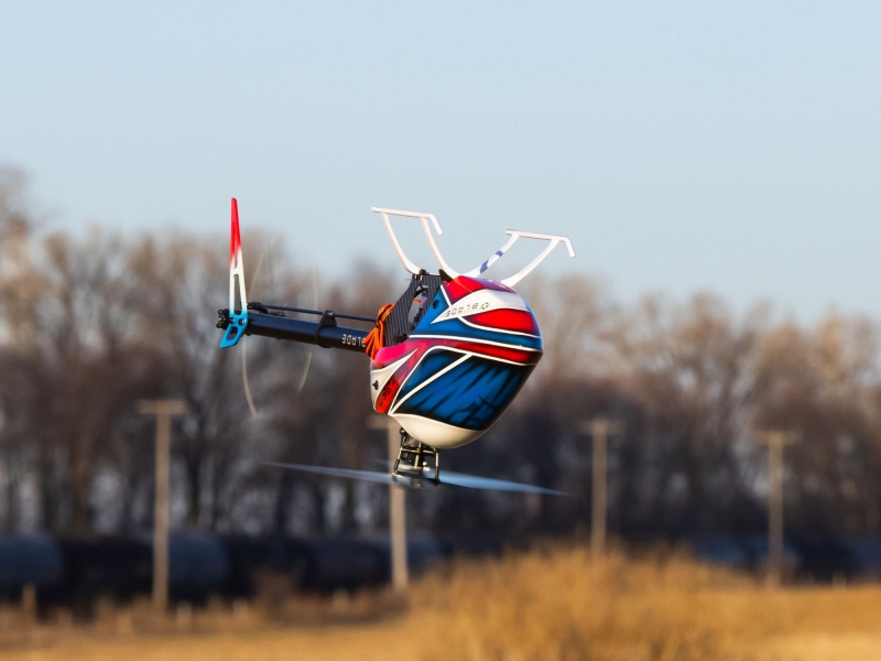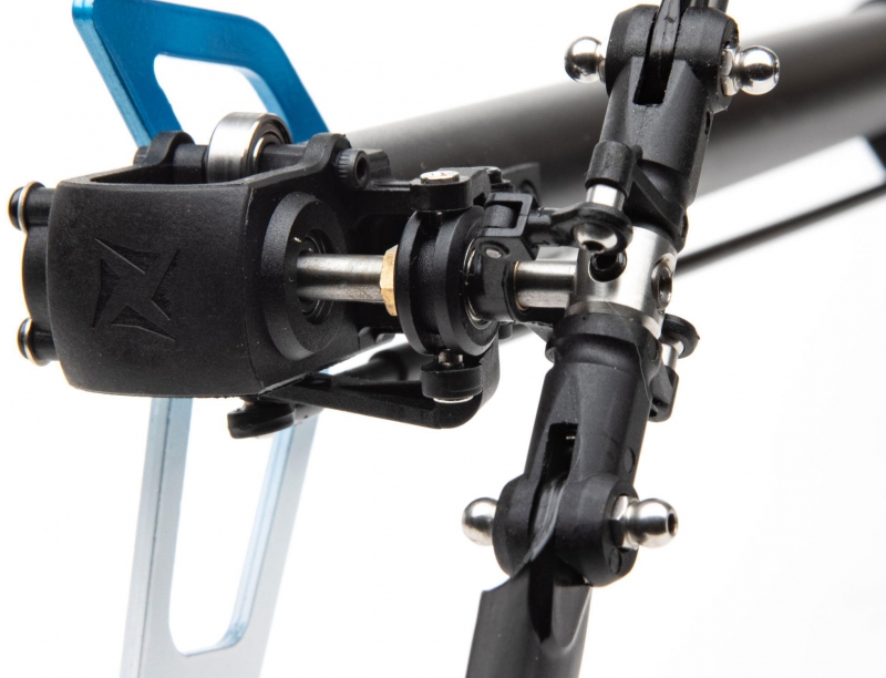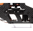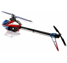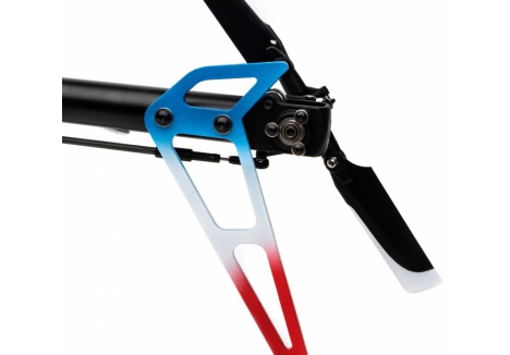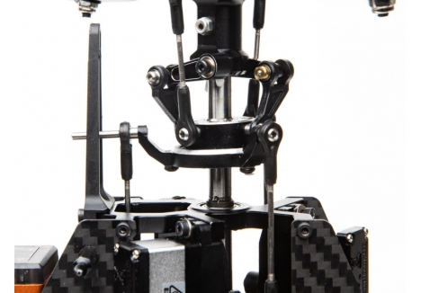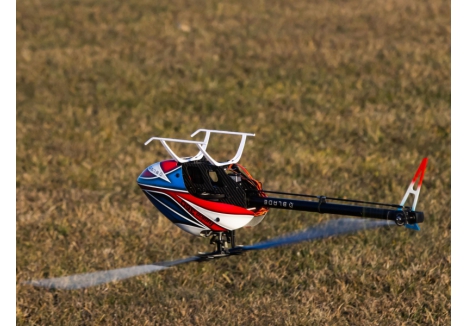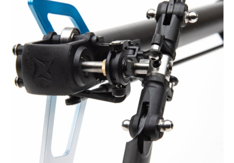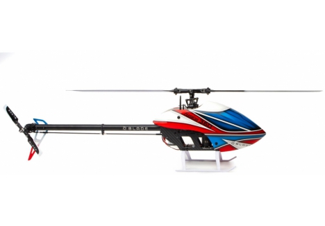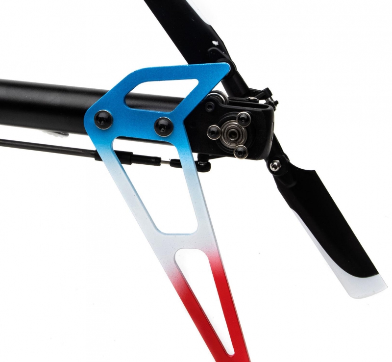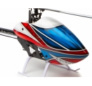 The all-carbon fiber and aluminum main frame takes rigidity to another level for a rock-solid flight experience. The carbon fiber main rotor blades feature an improved aerodynamic design with increases to efficiency and power. An oversized tail boom eliminates the need for boom supports and is crowned by an ABS plastic tail case improving vibration damping and performance.