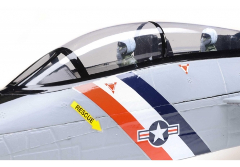 With the E-flite® F-14 Tomcat Twin 40mm EDF (Electric Ducted Fan) jet, more pilots can enjoy flying a replica of the iconic fighter than ever before! Developed for the U.S. Navy, the Grumman F-14 Tomcat made its first deployment in 1974 aboard the USS Enterprise, replacing the McDonnell Douglas F-4 Phantom II. This E-flite model is based on the F-14D Super Tomcat variant and the factory-applied finish pays homage to Strike Fighter Squadron 2 (VFA-2), also known as the famous "Bounty Hunters". During its 2002-2003 deployment — the final cruise with the Tomcat — VF-2 participated in Operation Iraqi Freedom flying reconnaissance, close air support, CAP and strike missions. The F-14 Tomcat Twin 40mm EDF recreates the VF-2 fighter down to the functional variable-sweep wings and full-flying stabs to deliver an authentic and unique flying experience. It's scaled to be practical for more pilots to fly and afford because it's compatible with popular 4S 2200mAh batteries. Plus it's equipped with exclusive AS3X® and optional-use SAFE® Select technologies — making it easier to fly than any other TOPGUN Tomcat EDF model yet!