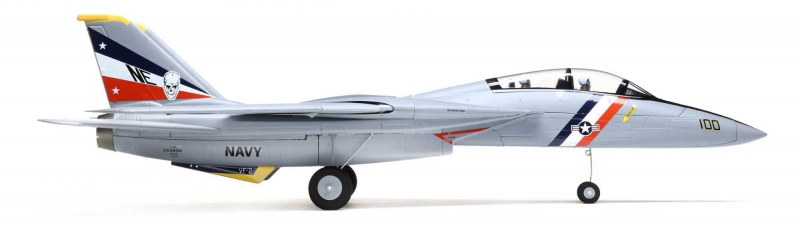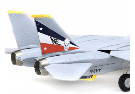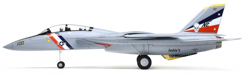 Many RC pilots have dreamed of flying an F-14 one day — and the E-flite® F-14 Tomcat Twin 40mm EDF makes that dream a reality! It arrives fully-assembled and nearly ready to fly right out of the box including a factory-installed receiver with exclusive Spektrum™ AS3X® and optional-use SAFE® Select technologies. It's ready to bind to your 6+ channel DSMX®/DMS2® equipped computer transmitter, plus you'll receive real-time telemetry data including battery voltage, current, motor RPM and more via compatible Spektrum AirWare™ equipped radios. The twin 40mm fans and brushless outrunner motors are compatible with affordable and common 4S 2200mAh 30+C batteries to deliver an excellent blend of performance and flight times. Full-flying stabs and functional 3-position variable-sweep wings deliver an incomparable flying experience you can't get anywhere else. The fully-molded EPO airframe is durable, lightweight, and factory-finished to pay tribute to the U.S. Navy's VF-2 "Bounty Hunters" squadron. The fixed landing gear plus steerable nose wheel makes it easy to taxi, takeoff and land on smooth surfaces — or remove the landing gear for more speed and vertical performance when hand launching over and landing on grass. With the F-14 Tomcat Twin 40mm EDF you're closer to being a TOPGUN than ever before!