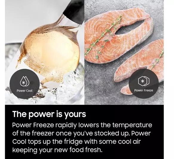 - Power Cool and Power Freeze – rapidly chills groceries and accelerates freezing