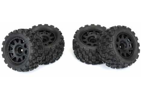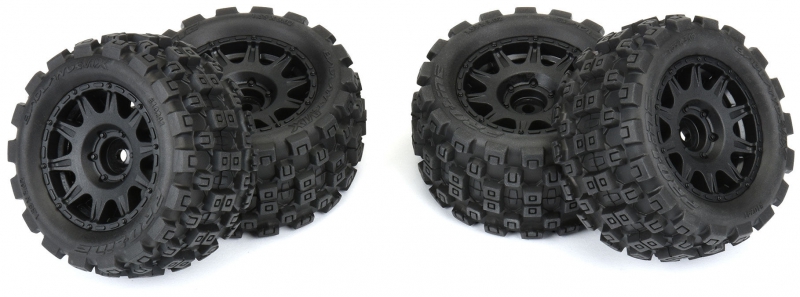 This is a set of pre-mounted Badlands MX Tires on Raid Wheels for the Granite™ GROM. Pro-Line’s most popular Monster Truck Bashing tire is now available in mini size for the 1/18 ARRMA® Granite™ GROM! The Badlands MX Line of tires are known for having Motocross-inspired tread with a big, bold, knobby tread that matches modern MX tire design.