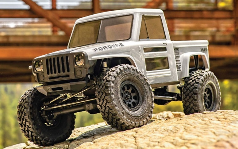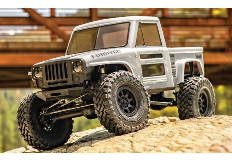 Features the VFD Spec transmission, F10 Straight Axles, and Fordyce body with bedsides. Included is a full function digital 4 Channel VT-1 Transmitter with multiple model memory and end point adjustment, making the VS4-10 Fordyce RTR ready to be equipped with optional radio controlled accessories such as a winch, light controller or dig. Out of the box the VFD Spec comes with 6.5% OD powered by a 35T VM-1 Motor and VE-1 3S capable ESC. High quality stainless steel links are used throughout the Fordyce’s suspension, including larger diameter lower links for extra mass down low and a high clearance front tie rod that removes the bends from the link. The F10 straight axles are equipped with a one piece ring gear and spool paired with machined pinion gear. The chromoly universal axle shafts allow for 49 degrees of steering. Full ball bearings, metal transmission gears and 32P spur / pinion provide smooth and reliable performance when tackling the toughest terrain.