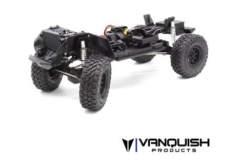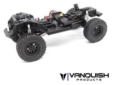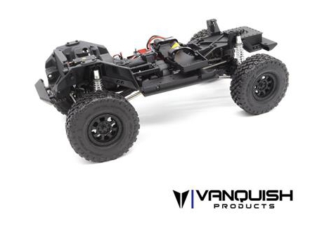 VS4-10 Chassis is made to provide you with a balance of scale looks and unhindered performance. The steel C-channel design provides scale detail, molded front and rear cross members fill the chassis rails in the highest stress locations for ultimate strength and provide features like dual servo mounts, winch line routing, and a fuel cell. The molded rock sliders come with a replaceable tapered outer portion that perfectly fits the Fordyce body. The panhard mount on the chassis is made from machined aluminum to withstand the impacts of severe trail conditions. Molded shock towers capture the top of the 90mm Incision S8E Shocks in double shear for maximum support. Narrow molded front and rear bumpers maximize clearances while improving approach and departure angles.