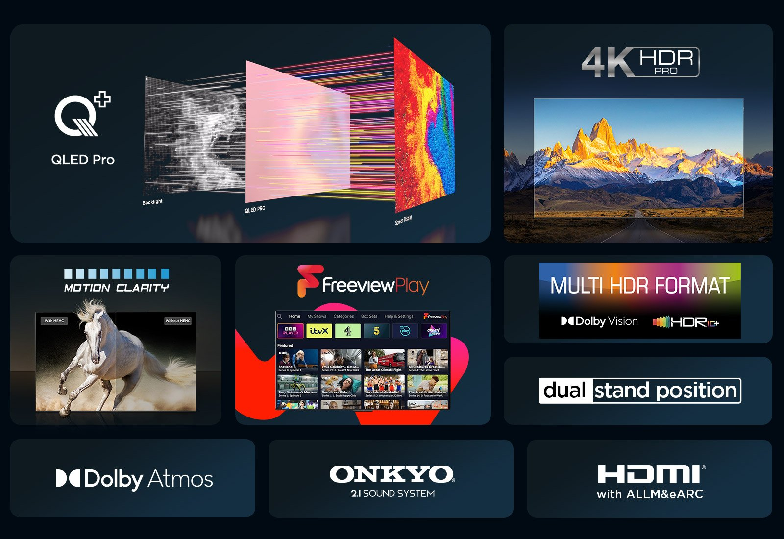 Android TV, Freeview Play, Dolby Vision & Atmos, Motion Clarity, Hands-Free Voice Control, compatible with Google Assistant & Alexa