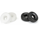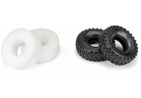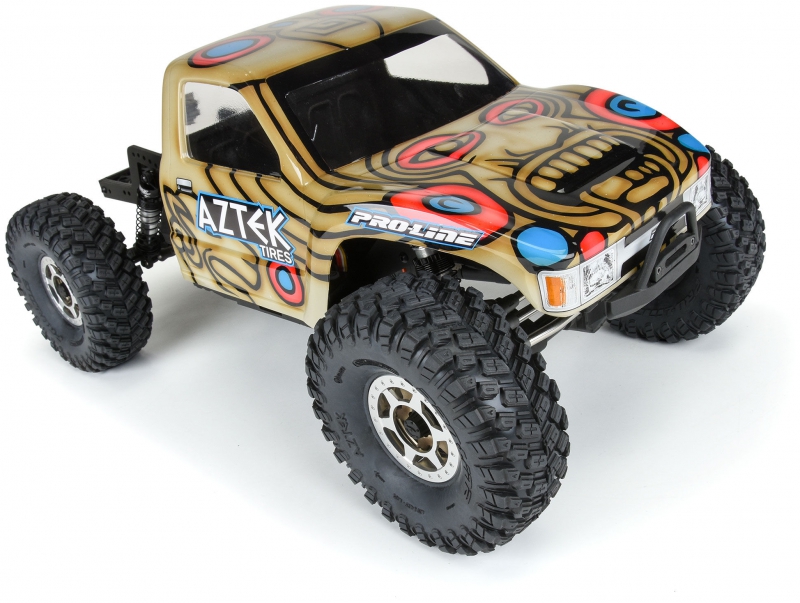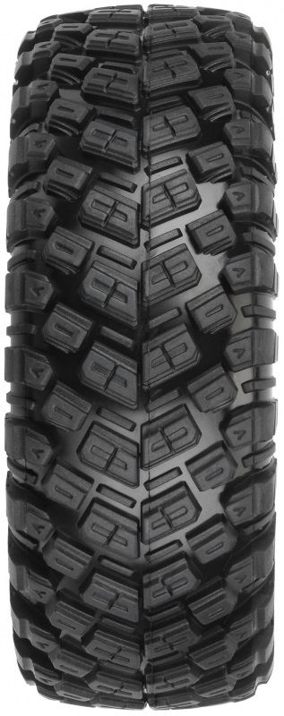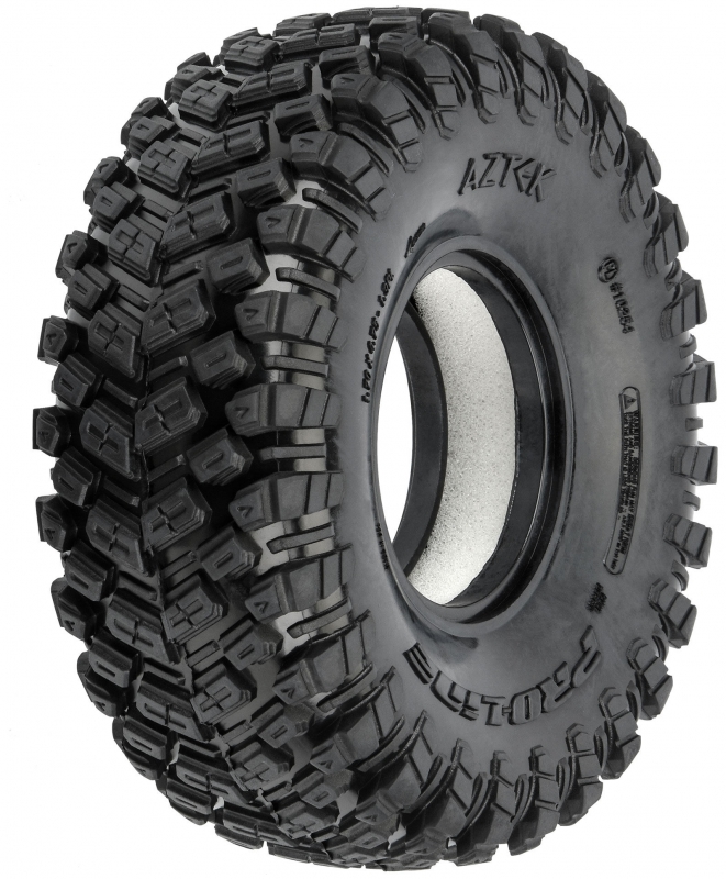 This is a pair of Aztek 1.9" Rock Crawling Tires. Pro-Line proudly announces the release of the Aztek, a revolutionary RC rock-crawling tire designed to redefine off-road performance standards. The Aztek boasts a chevron-shaped, stepped lug tread design, fortified by heavy-duty sidewall lugs with siping for enhanced side-hilling capabilities. This tire is meticulously crafted to conquer any terrain, offering exceptional forward bite in wet or dry, abrasive or slick conditions.