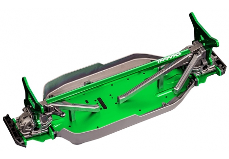 The Traxxas TRX95096-4-GRN brushless 1:8 monster truck features a 3.2 mm aluminium chassis plate reinforced with a composite truss system and full-length T-Bar. This triangulated structure absorbs impacts and maintains rigidity during aggressive driving. The wide track width and long wheelbase contribute to stability, while the race-inspired suspension geometry allows the truck to handle jumps, bumps, and uneven terrain with ease. It’s a foundation built for punishment and precision.