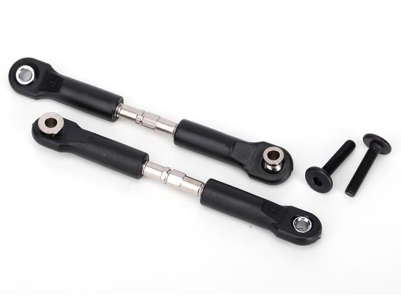 Replace your non-adjustable rear camber links with these 39 mm (69 mm center to center) metal turnbuckles for trackside camber adjustment. Comes assembled with rod ends and hollow balls.
