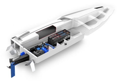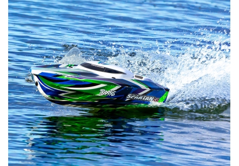 Grab a fistful of throttle and Spartan SR’s VXL-6s™ Marine power system transforms 22+ volts of LiPo power into furious acceleration. The high-performance prop digs in, getting the boat on plane quickly and efficiently as it slices through the water at speeds of 50 mph and beyond.