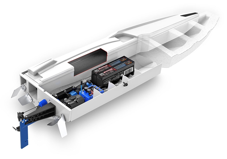 Grab a fistful of throttle and Spartan SR’s VXL-6s™ Marine power system transforms 22+ volts of LiPo power into furious acceleration. The high-performance prop digs in, getting the boat on plane quickly and efficiently as it slices through the water at speeds of 50 mph and beyond.