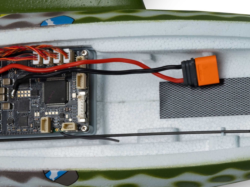 This model supports 3S11.1V600–850mAh30+C LiPo batteries with IC2 connectors, delivering the high current needed for powerful EDF operation. Pilots can enjoy faster acceleration and longer flying time depending on their battery choice. The IC2 connector ensures secure power delivery during high-speed flight.