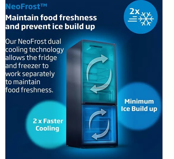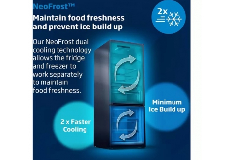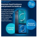 For more controlled cooling and freezing, our NeoFrost™ technology offers two separate cooling systems to maintain optimal humidity and freshness, faster cooling, and a dry environment in the freezer so ice won't build up. Having two cooling systems also means odours won't transfer between the fridge and freezer, keeping your food tasting and smelling fresh.