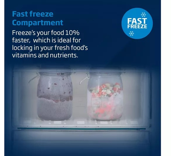 Ideal for locking in your food's vitamins and nutrients, the fast freeze setting in the top compartments of our freezers freeze your food 10% faster than the other shelves.