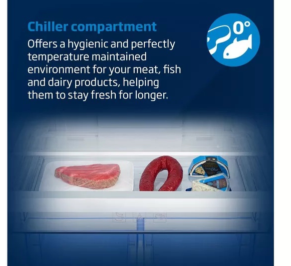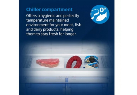 Offering a hygienic and perfectly suited environment for your meat, fish and dairy products, the chiller compartment maintains a low temperature at around 0ºC, helping them to stay fresh for longer.
