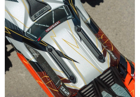 The ARRMA VORTEKS MEGA 550 4X2 ST with Battery & Charger Orange - C-ARA3205ST1 arrives factory-assembled and ready to run. Included in the box are the Spektrum SLT2 2.4GHz transmitter, Spektrum 2-in-1 40A ESC/receiver, Spektrum S660 high-torque steering servo, and a high-capacity Spektrum Smart 3300mAh 7-cell NiMH battery. The Spektrum S120 USB-C Smart charger ensures safe and efficient charging, while four “AA” batteries for the transmitter and high-quality molded tools are also provided. This complete package makes the ARRMA 1/10 stadium truck with adjustable suspension and dBoots tires an ideal starter kit for users seeking a reliable and scalable RC experience.
