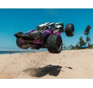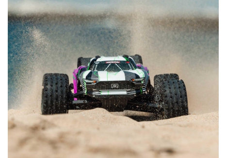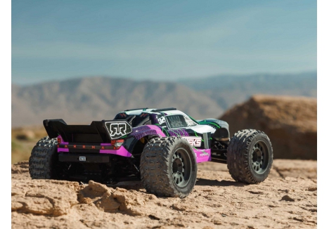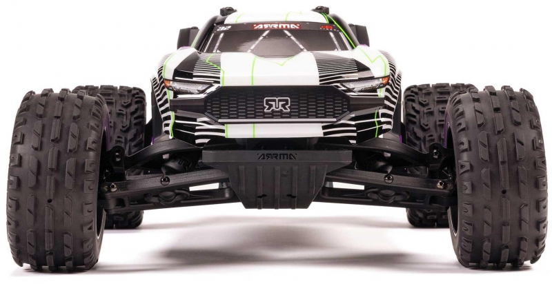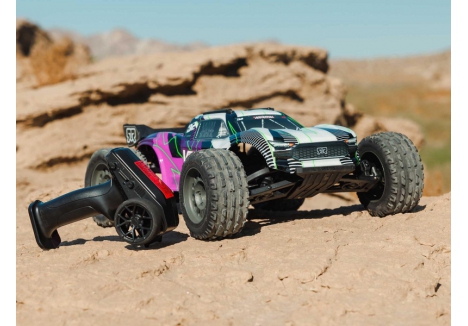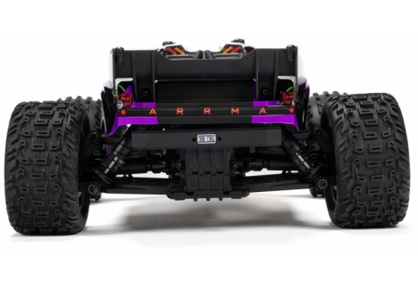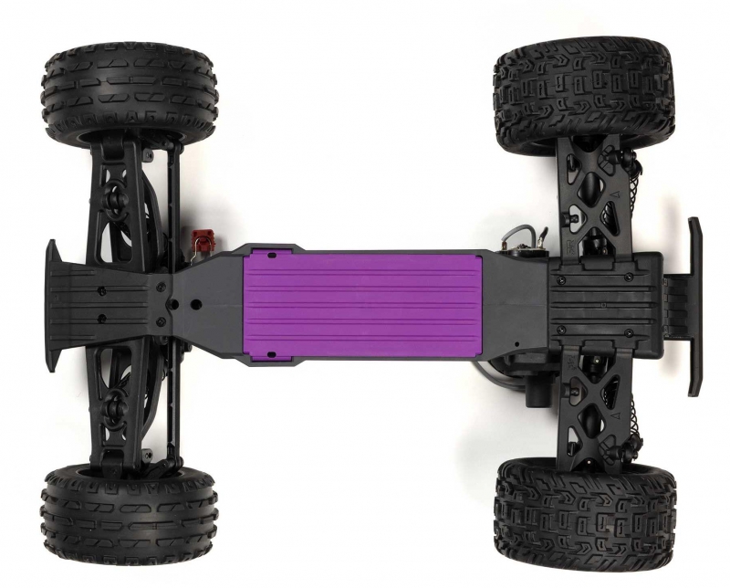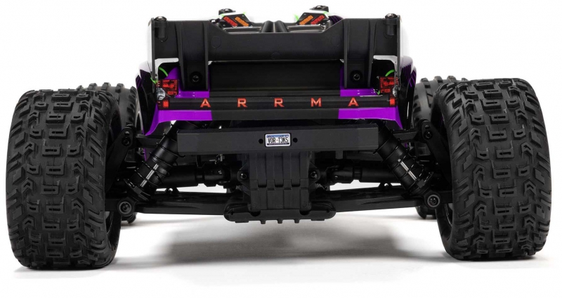 The ARRMA beginner RC car with bottom-loading battery tray and mesh-safe transmission is designed to make RC driving accessible and enjoyable from the start. The included Spektrum SLT2 2-channel radio features a throttle limiter that restricts speed to 50% or 75%, allowing new users to build confidence before unlocking full performance. The waterproof Spektrum 2-in-1 ESC/receiver and high-torque S660 steering servo ensure reliable control even in wet conditions, while the composite chassis and oil-filled coilover shocks absorb impacts and terrain irregularities. With the ARRMA purple RC truck with waterproof Spektrum SLT2 electronics, beginners can enjoy a forgiving yet exciting driving experience without compromising on durability or style.