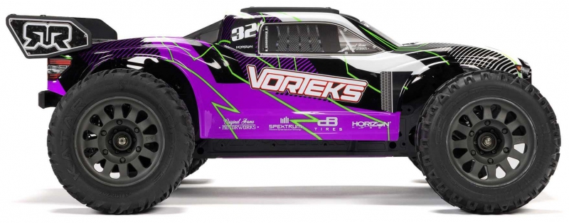 - Product Type: ARRMA VORTEKS C-ARA3205ST2 1/10 purple stadium truck RTR, ARRMA brushed 2WD RC truck with MEGA 550 motor C-ARA3205ST2, ARRMA electric stadium truck with Smart battery and charger C-ARA3205ST2, ARRMA purple RC truck with waterproof Spektrum SLT2 electronics, ARRMA 1/10 stadium truck with dBoots tires and coilover suspension, ARRMA beginner RC car with bottom-loading battery tray and mesh-safe transmission