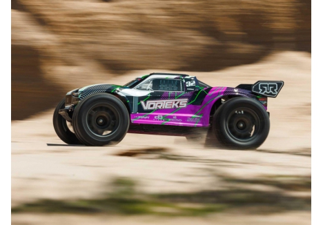 Unleash backyard racing thrills with the ARRMA VORTEKS C-ARA3205ST2, a 1/10 scale 2WD electric stadium truck engineered for speed, control, and rugged terrain. Finished in bold purple and factory-assembled for instant action, the ARRMA brushed 2WD RC truck with MEGA 550 motor C-ARA3205ST2 delivers refined performance and beginner-friendly handling. With waterproof electronics, a Smart NiMH battery and charger, and a durable composite chassis, the ARRMA electric stadium truck with Smart battery and charger C-ARA3205ST2 is built to bash, race, and evolve with your skills. Whether you're new to RC or pushing for precision, this stadium truck offers a complete, upgrade-ready platform that’s fast, tough, and fun to drive.