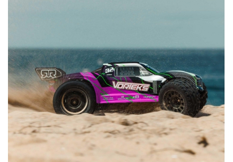 Ready to dominate backyard tracks and off-road terrain? Buy ARRMA VORTEKS purple 2WD stadium truck C-ARA3205ST2 with battery and charger and experience precision control, rugged durability, and amplified bashing fun.