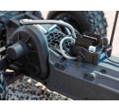 One of the standout features of the ARRMA VORTEKS MEGA 550 blue truck with dBoots Dirtrunner ST tires and composite chassis is its bottom-loading battery tray. This design eliminates the need to remove the body or fumble with clips during battery changes. With a simple push of the latches, users can access the tray, swap out the battery, and return to action in seconds. This convenience is especially valuable during extended bashing sessions, where minimizing downtime enhances the overall experience. The tray accommodates both 7-cell NiMH and 2S LiPo batteries, giving users flexibility in power options as they progress. The IC3 connector ensures secure and efficient power delivery, while the tray’s placement maintains the truck’s low center of gravity for improved handling.
