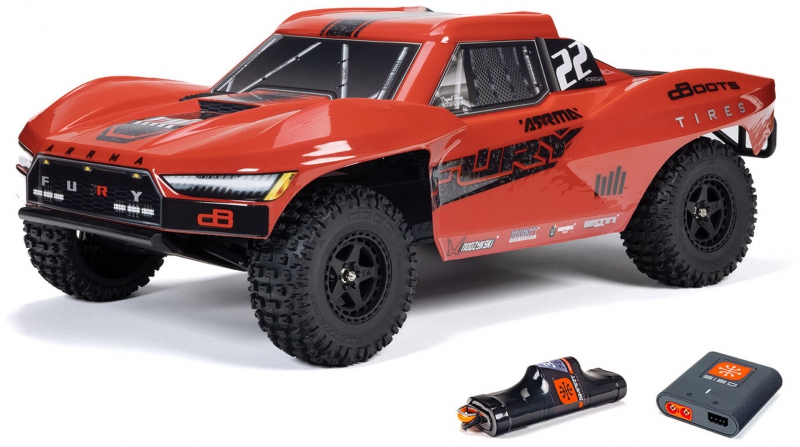 - Product Type: ARRMA FURY C-ARA3221ST1 1/10 scale 2WD RC truck, ARRMA FURY MEGA 550 brushed short course truck, ARRMA FURY red RTR electric stadium truck, ARRMA FURY RC truck with bottom-loading battery tray, ARRMA FURY red short course truck with waterproof electronics