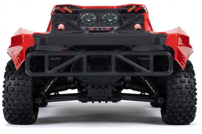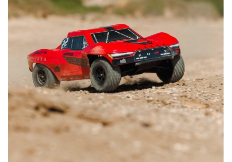 The ARRMA FURY C-ARA3221ST1 1/10 scale 2WD RC truck is engineered for high-impact short course bashing and designed to deliver an exciting, beginner-friendly experience straight out of the box. With its aggressive closed-wheel body and durable composite chassis, the ARRMA FURY MEGA 550 brushed short course truck offers a unique combination of rugged performance and accessible control. Whether you're racing side-by-side or carving through rough terrain, the ARRMA FURY red RTR electric stadium truck is built to handle it all with confidence and style. Its waterproof electronics, adjustable suspension, and bottom-loading battery tray make it a standout choice for RC enthusiasts seeking reliability and ease of use.