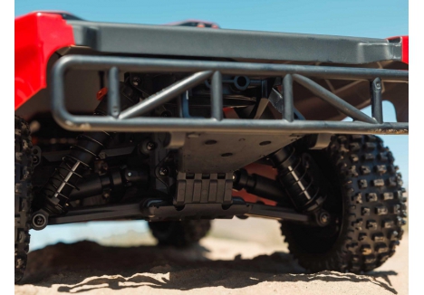 Power delivery in the ARRMA FURY red RTR electric stadium truck is managed by a factory-installed MEGA 550 14T brushed motor and a heavy-duty metal gear differential. This setup ensures that torque is reliably transferred to the rear wheels, enabling the truck to blast through challenging terrain with ease. The drivetrain is robust enough to handle future upgrades, including brushless motors and LiPo batteries, giving users the flexibility to scale performance as their skills grow. The mesh-safe motor plate adds an extra layer of protection, keeping debris out of critical components and maintaining long-term durability.