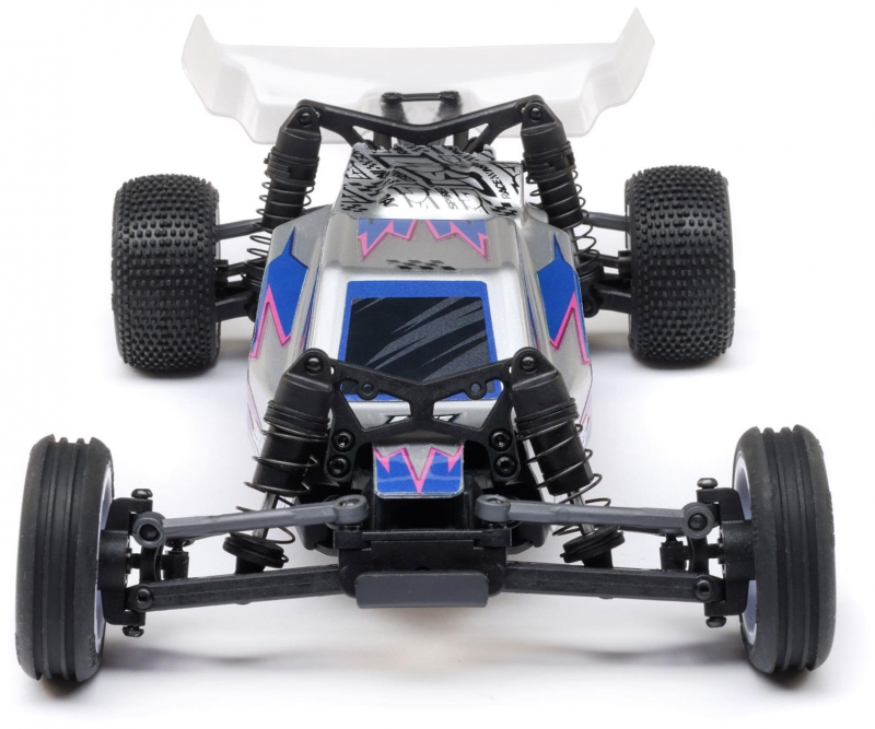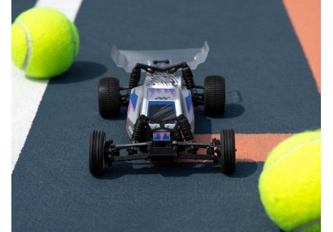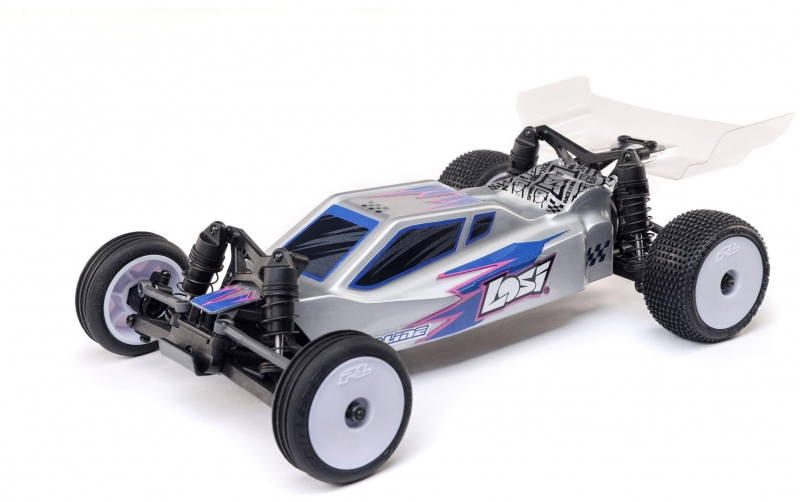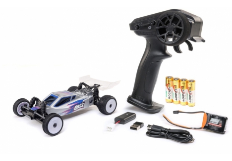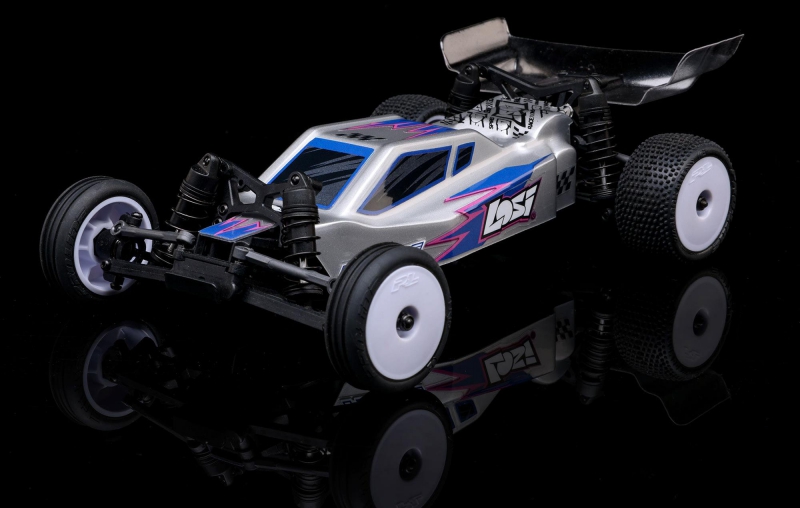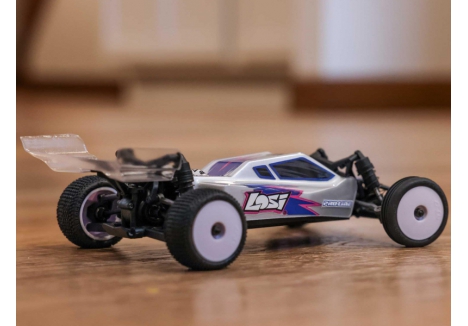 Small enough to run almost anywhere, the 1/24 scale Losi Micro-B 2WD RTR is an easy, budget-friendly way to share your passion for racing with friends and family. Inspired by a TLR World Champion buggy, it's proof that a micro buggy can deliver big fun!