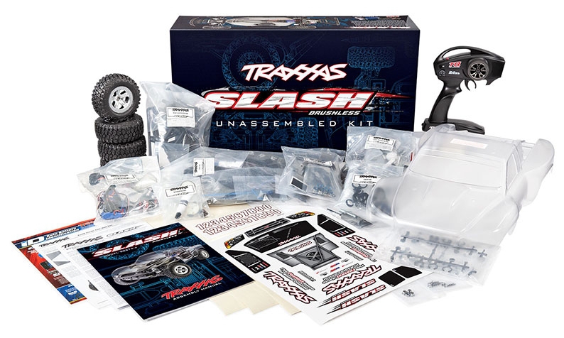 The Slash Assembly Kit adds a fun and exciting dynamic to your RC experience. Build your Slash from the ground up with all the required parts and electronics included in the box. Battery and charger sold separately. Slash includes the convenience of a TQ™ 2.4 GHz radio system, powerful and efficient BL-2s brushless power system, and a convenient and secure clipless body. All the parts are organized neatly in labeled bags with a fully illustrated color manual to make building rewarding and fun. The Slash assembly kit is perfect for drivers of almost any age or skill level. Build one yourself and experience RC fun the Traxxas way—fast, fun, and easy to use!