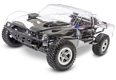 - Body: clear clipless short-course shell with window masking and custom decals