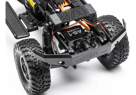 Worm gear differentials in the front and rear axles of the AXIAL SCX24 Lexus GX 470 C-AXI-1532T3 deliver high torque and increased ground clearance. The worm screw and gear setup allows power to be transferred efficiently to the wheels, reducing rollback on steep inclines and improving climbing ability. Paired with the Dynamite 88T brushed motor, the drivetrain provides reliable performance across technical terrain. The motor is mounted on an aluminium bracket to minimise flex and protect the gears, ensuring long-term durability.