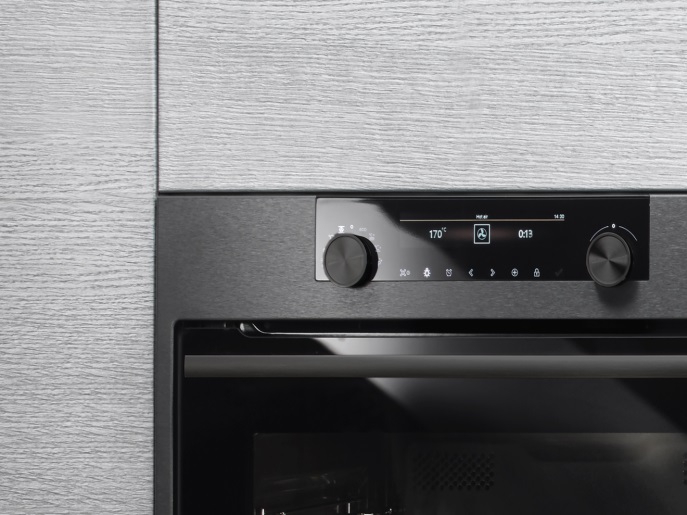 This Asko multifunction single oven looks stunning with its black steel finish.