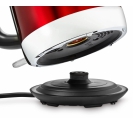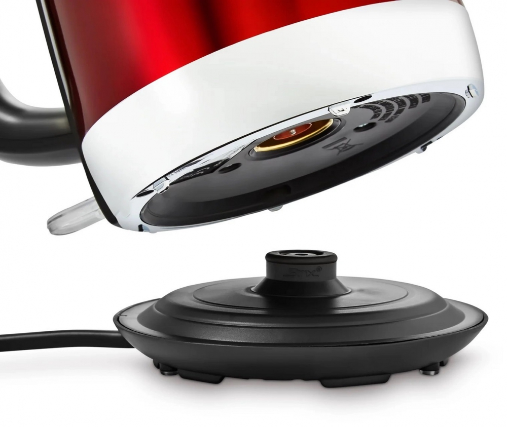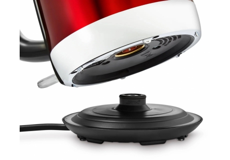 Absolutely. The Morphy Richards red stainless steel jug kettle with rapid boil is designed for intuitive use. Its 360-degree base allows the kettle to be placed and lifted from any angle, making it suitable for both left- and right-handed users. The cordless design enhances mobility, while the built-in cord tidy keeps your kitchen surfaces neat and free from trailing wires. These thoughtful features make everyday use simple and hassle-free.