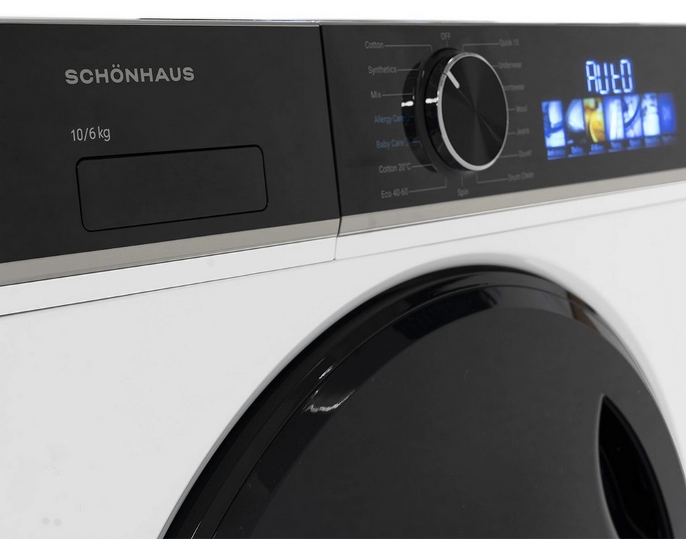 - Product Type: Schonhaus WDSF0110614AW washer dryer white, Schonhaus WDSF0110614AW 10kg 1400 spin washer dryer, Schonhaus WDSF0110614AW freestanding washer dryer with LED display, Schonhaus WDSF0110614AW with 3D bubble drum and anti-crease function, Schonhaus washer dryer with BLDC inverter and 15 programmes
