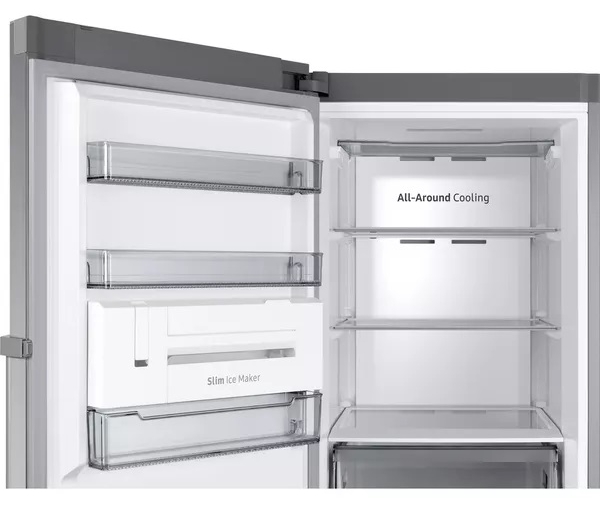Slimmer walls mean you get more room inside the freezer. Clever, right? All-Around Cooling keeps the temperature nice and steady by moving cool air all around the freezer. It means each bit of food stays frozen, no matter where you put it. And you'll never have to defrost it thanks to No Frost technology. It stops ice from building up inside, so you won't need an ice pick when you're reaching for that raspberry ripple.