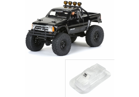 The Axial 1/24 Base Camp crawler with licensed Falken tires and Black Rhino wheels C-AXI-1219T3 is designed with scale accuracy in mind. The officially licensed Falken Wildpeak M/T tires provide aggressive tread for grip and clearance, while the Black Rhino Primm wheels add visual authenticity. The factory-painted polycarbonate body features contemporary truck styling and includes high-clearance Demello off-road bumpers for added realism. The hinged body design allows for quick access to internal components without the need for clips, making maintenance fast and hassle-free. These details make the Axial SCX24 Base Camp a standout in the micro crawler category.
